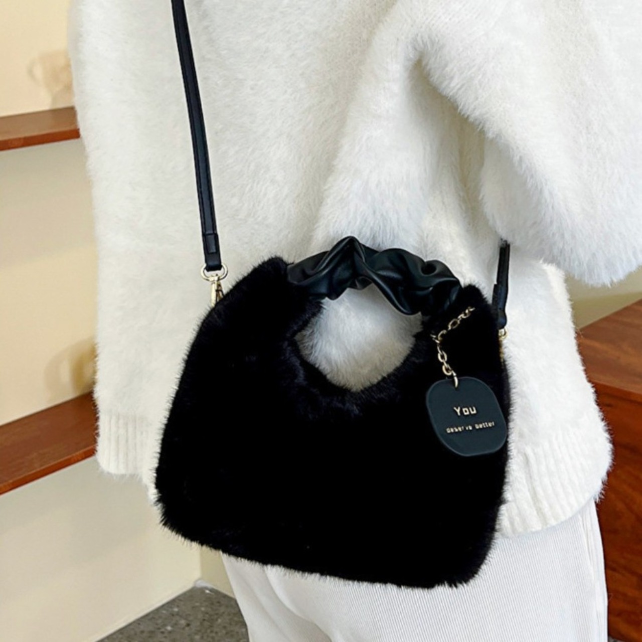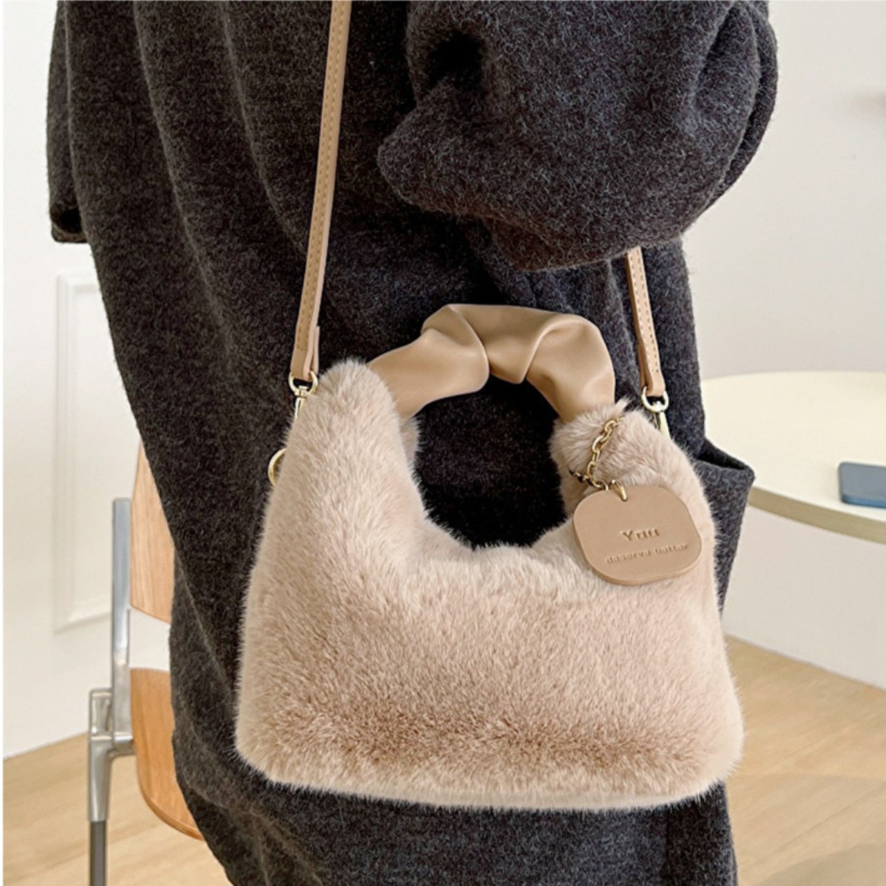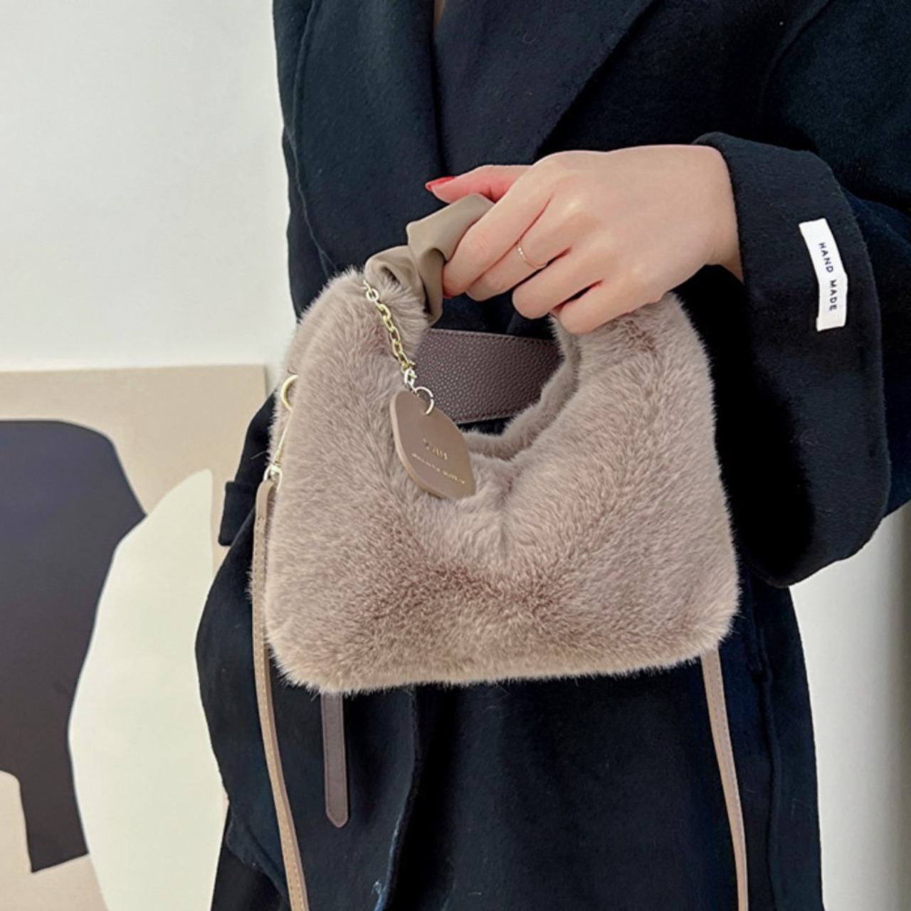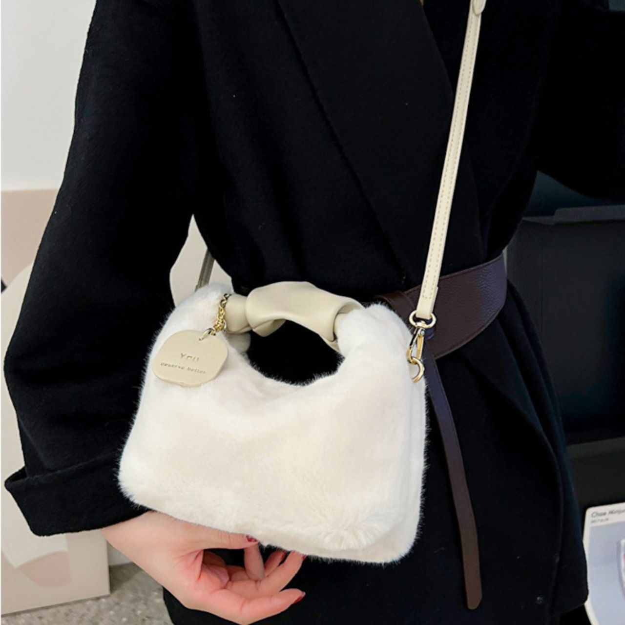 2WAY ファーショルダーバッグ ハンドバッグ ふわふわ 上品