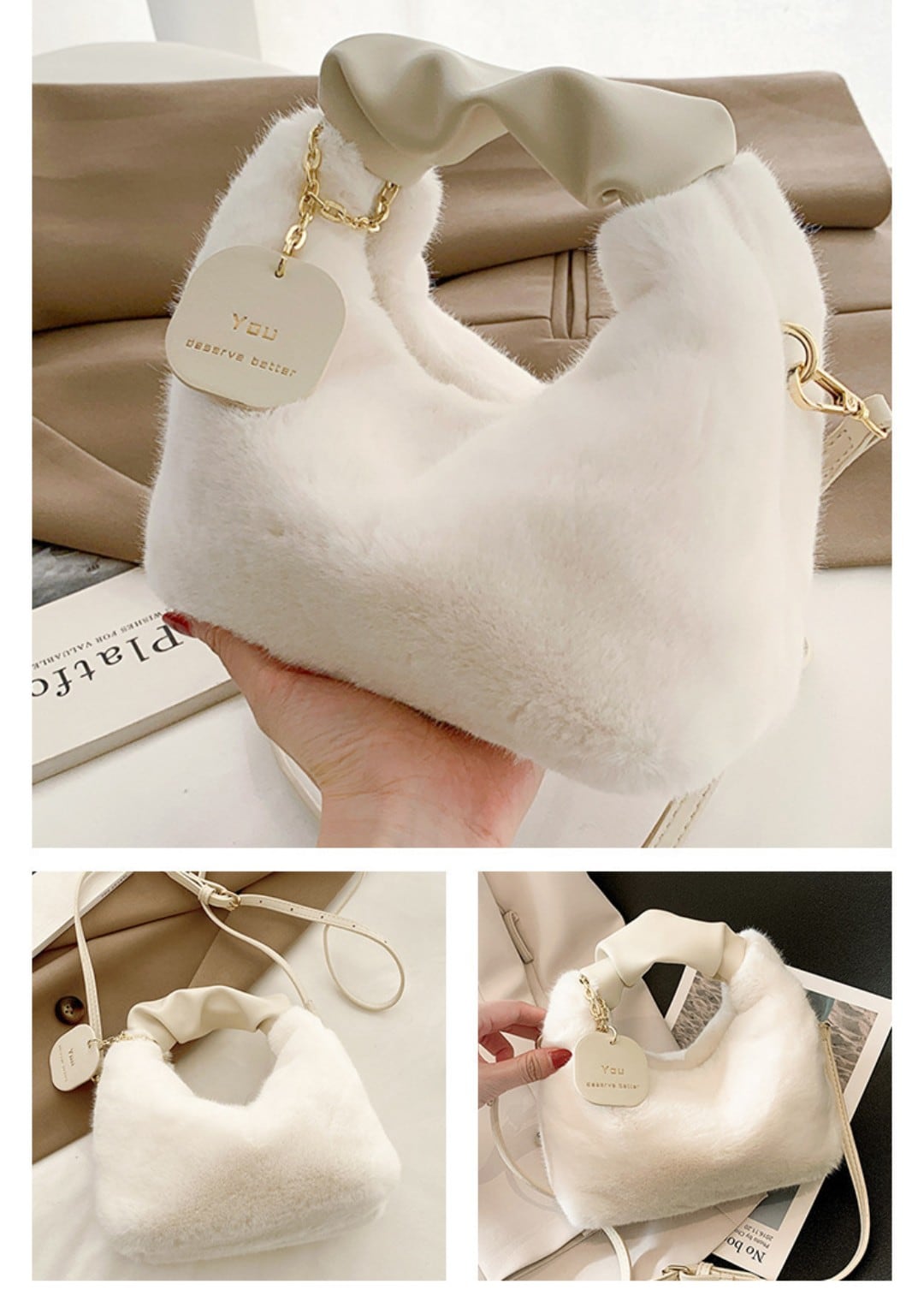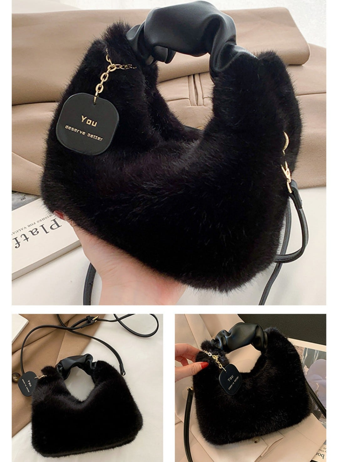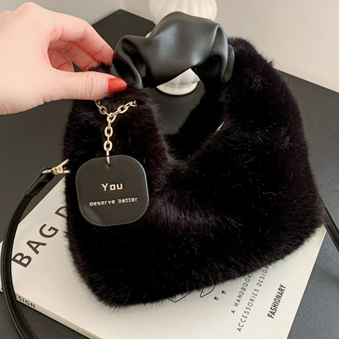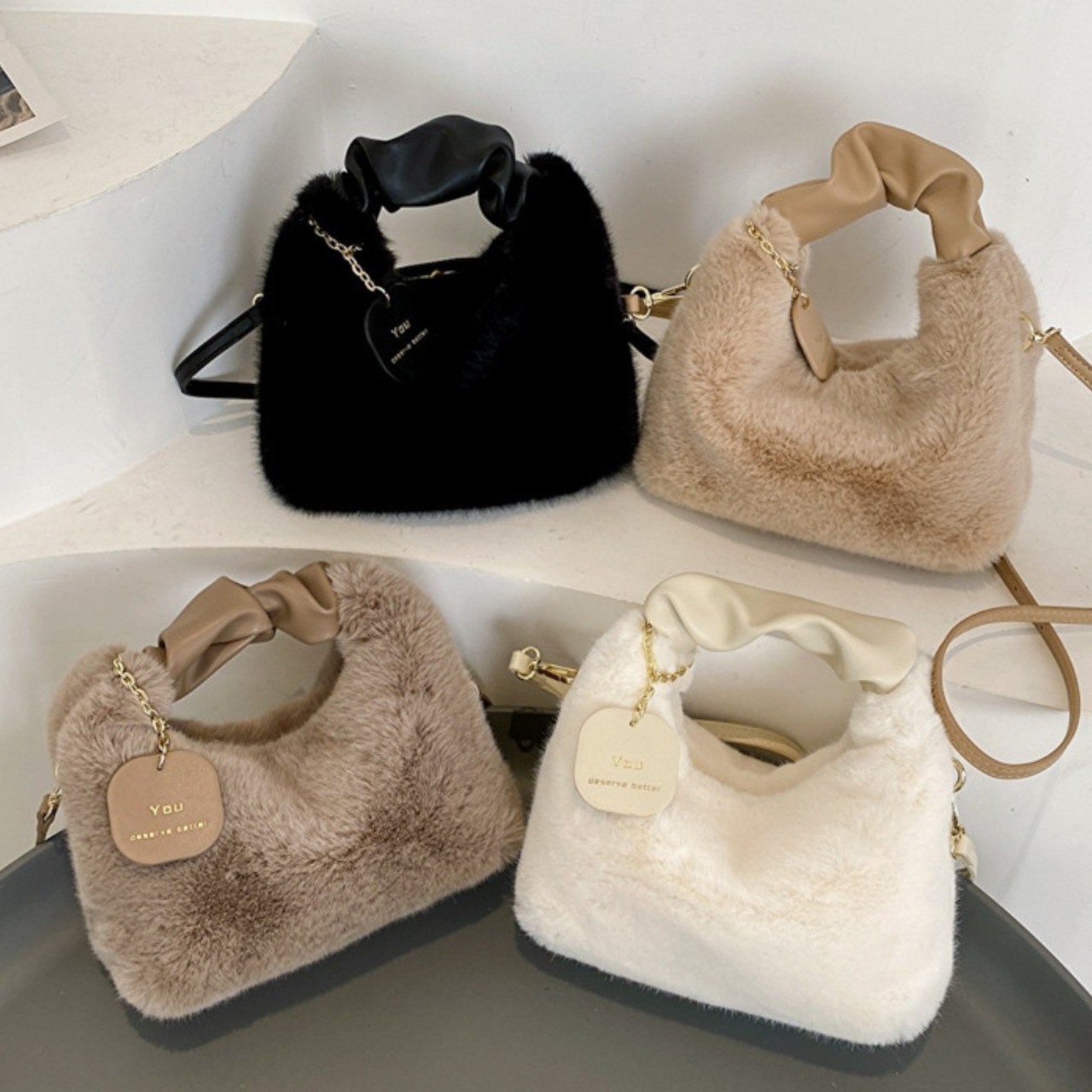 2WAY ファーショルダーバッグ ハンドバッグ ふわふわ 上品