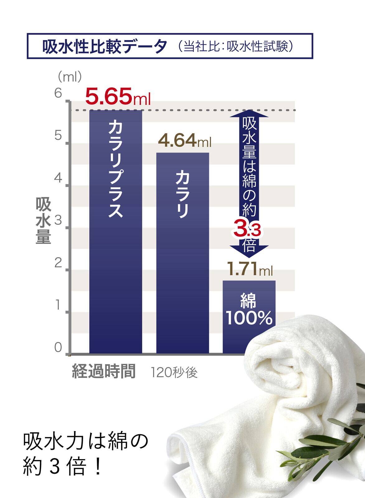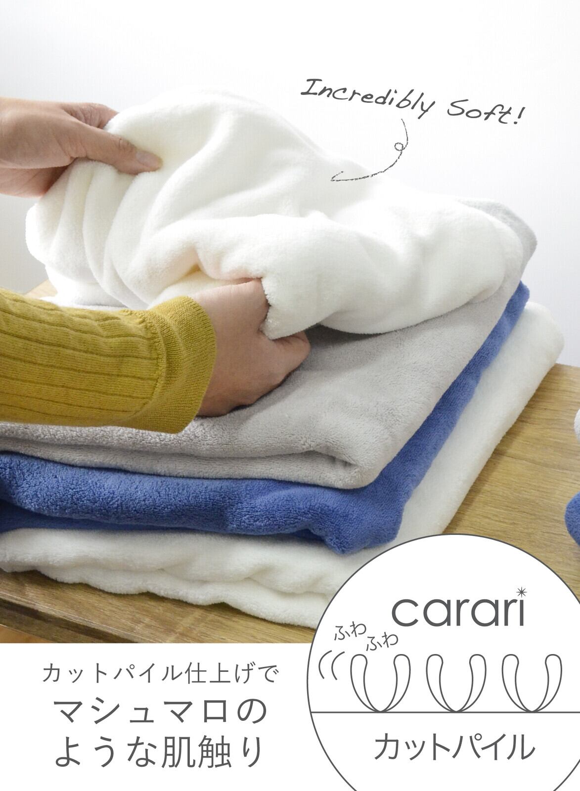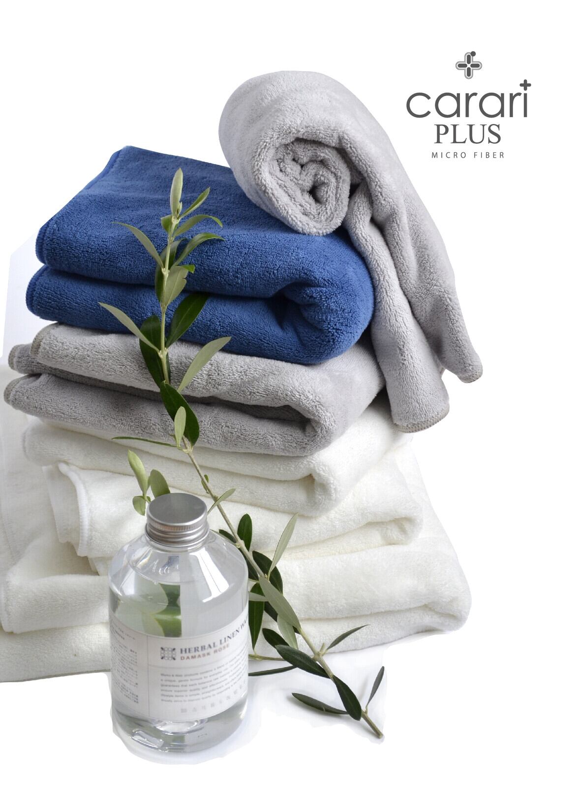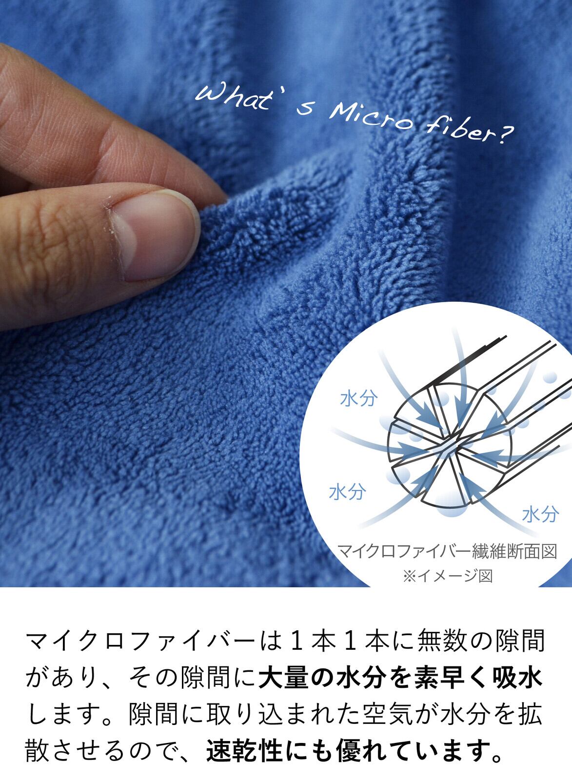 清潔感のあるクールな色合いと抜群の吸水力、マシュマロのようなふわふわの肌触りまで叶えたマイクロファイバータオル。日常に欠かせないタオルだからこそ使い心地にこだわったcarari(カラリ)シリーズのタオル【驚きの吸水力】水に触れた瞬間、サッと吸水してくれます。その吸水力はなんと綿のタオルの約3.3倍!マイクロファイバー繊維の毛細管現象によって、水分を素早く吸収します【抜群の速乾性】マイクロファイバーは、1本1本が放射線状の三角断面形状で無数の隙間を持っています。通気性に優れた繊維なので、高い速乾性を発揮します。洗濯物の乾きにくい時期にも快適にお使いいただけます【やさしい肌触り】通常織りあがったタオルは両面ともパイル状になっているため、引っかかりやすい。carariのタオルは表面を刈り取っているため、引っかかりにくく、上質で滑らかな肌触りに仕上げています