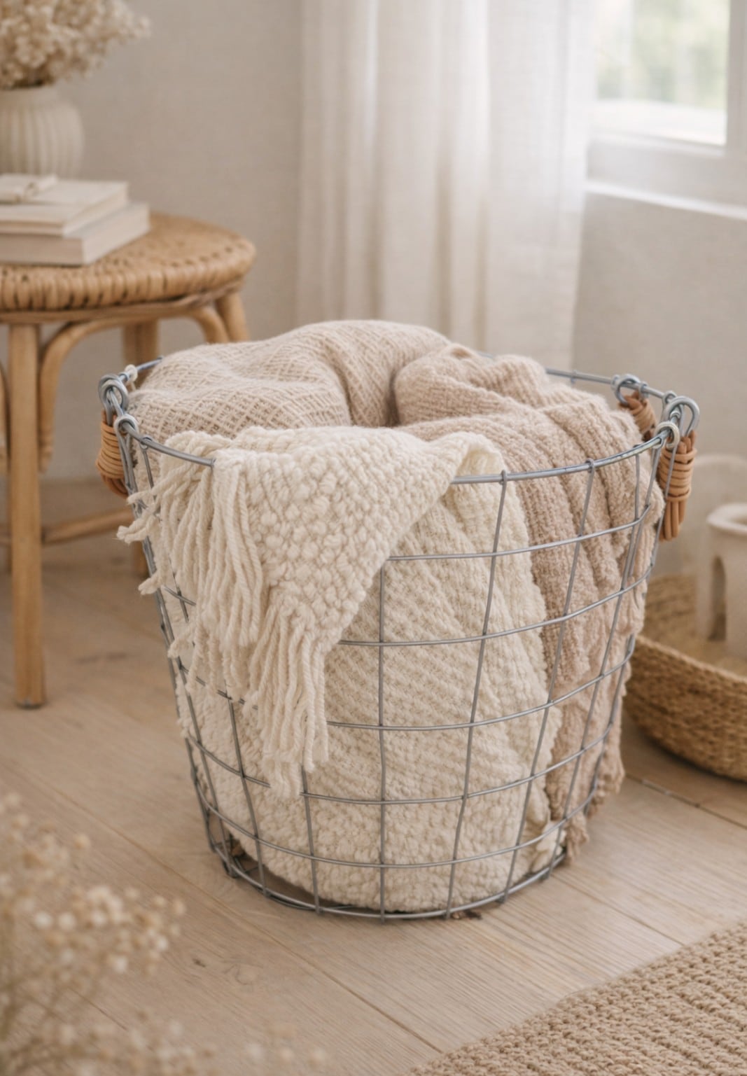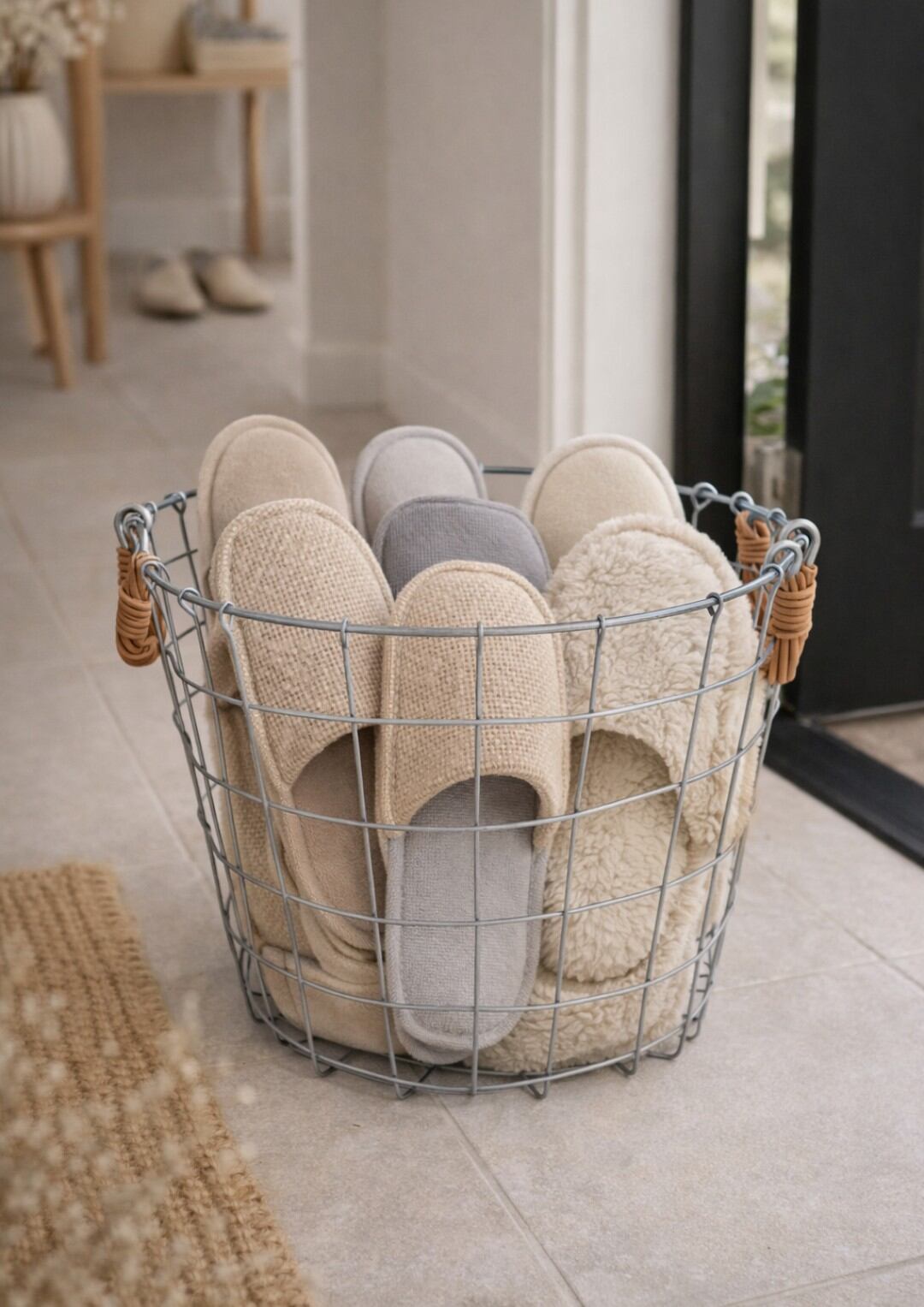 Dusaule(デュソール)シリーズは落ち着いたシルバー塗装で仕上げ、アクセントに柳を使ったワイヤーバスケットです。ロータイプはコンパクトであまり底が深くない分、必要なものをサッと取り出しやすいのでりんごやオレンジなどのミカンを入れたり、毎朝使う化粧品やハンドクリームなどケア用品の収納にもおすすめのサイズ感です。ハイタイプは軽量で持ち運びやすく、ブランケットや雑誌を入れるリビング収納やランドリーバスケットとしても活躍してくれます。手作りのため、まっすぐでないところも無骨な雰囲気を盛り上げてくれる味わいに。バスケットの左右にハンドルが付いているので持ちやすく、お部屋間の移動もラクラク。その他のDusaule(デュソール)シリーズで収納を揃えても統一感が出ます。